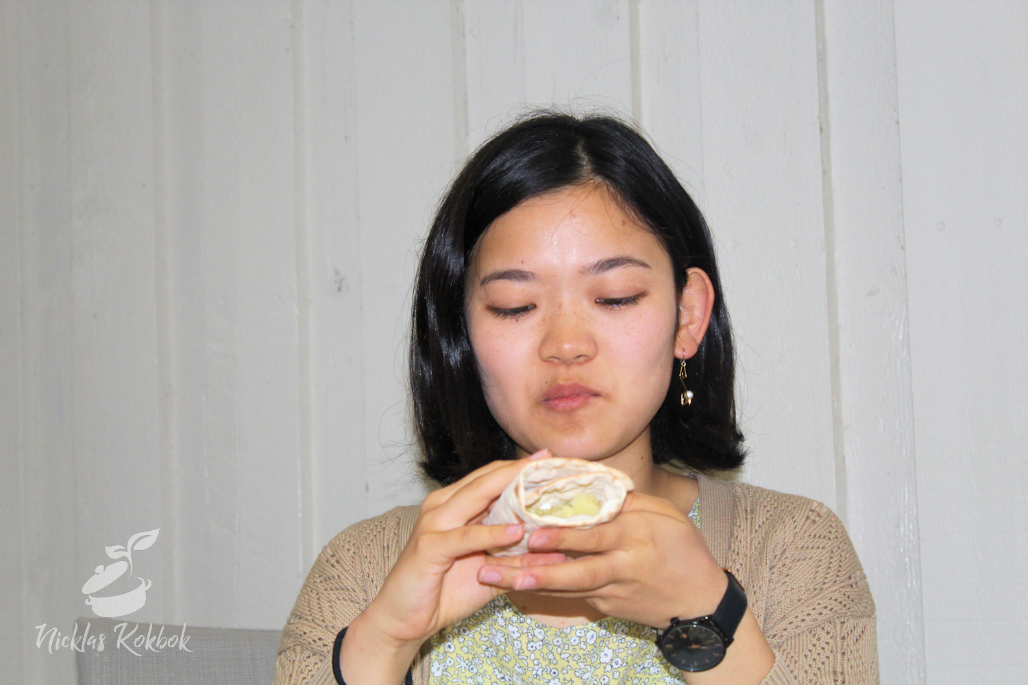 Mai och Emmas pojkvän var de enda som gav sig på surströmmingen, vi andra hoppade över och njöt istället av lite småplock. Efter att Mai ätit halva klämman så började ansiktet få en smått grönaktig färg och då sa jag att hon inte behövde äta upp resten. Hon lämnade tacksamt över surströmmingsklämman till mig som jag sedan gick och slängde i soporna. Nu var det får var nog med surströmming, i alla fall tills nästa utbytesstudent hälsar på.