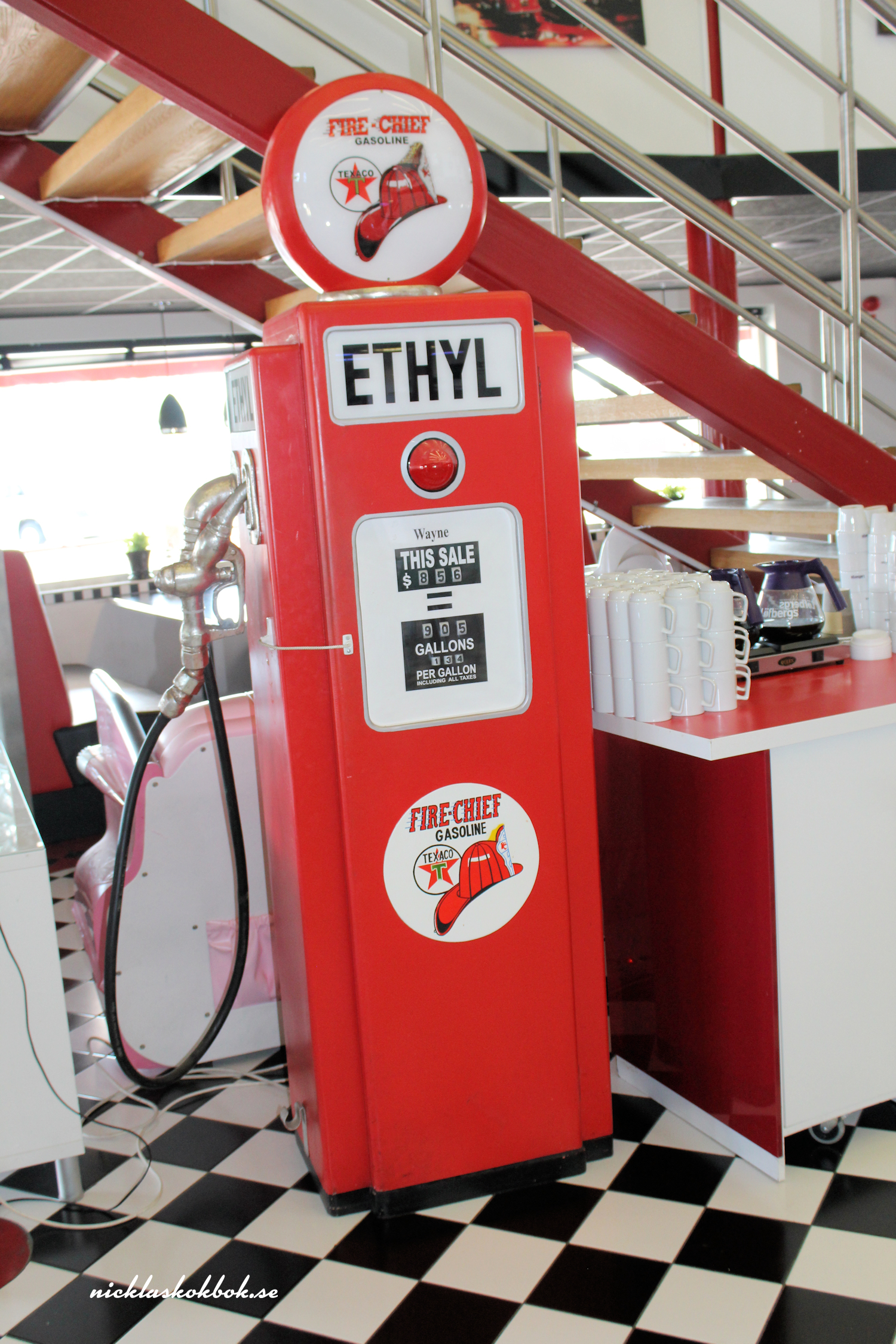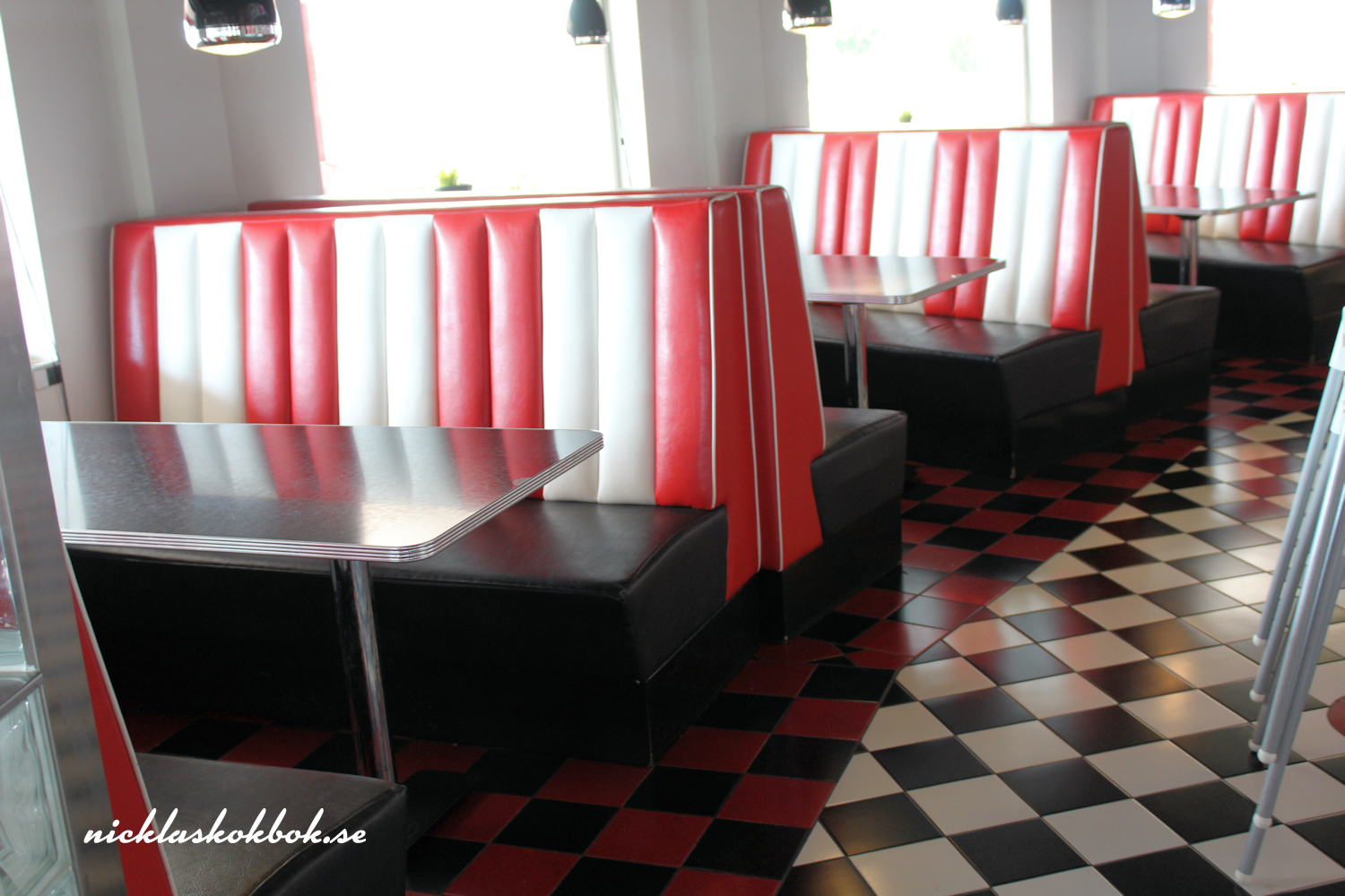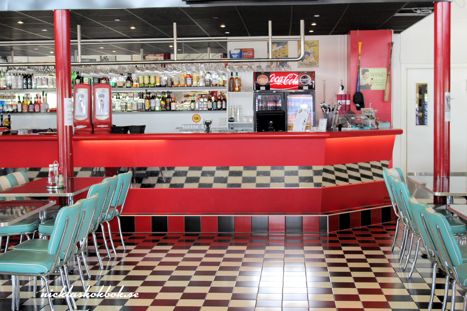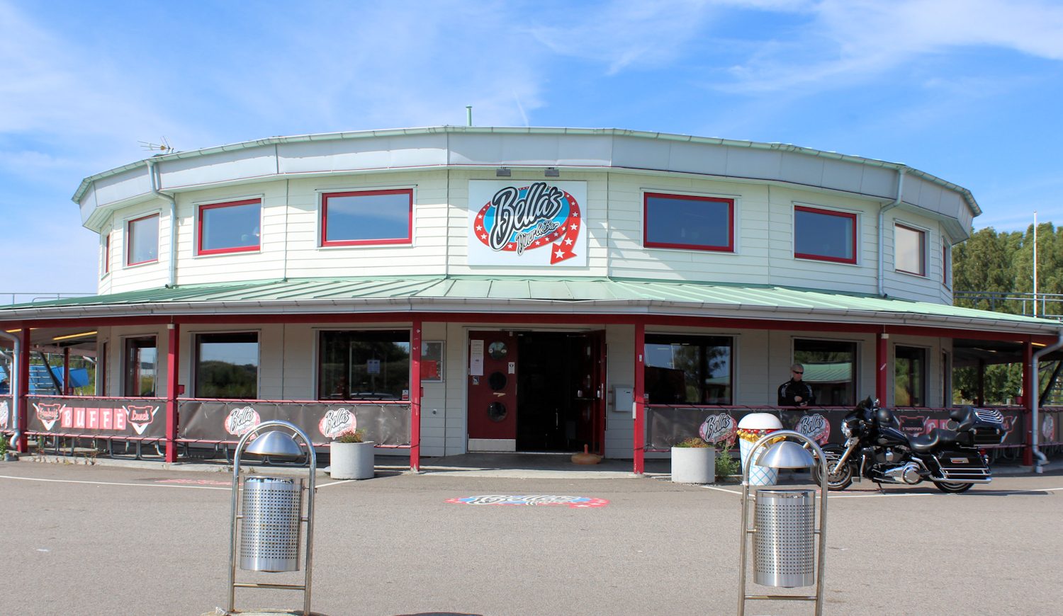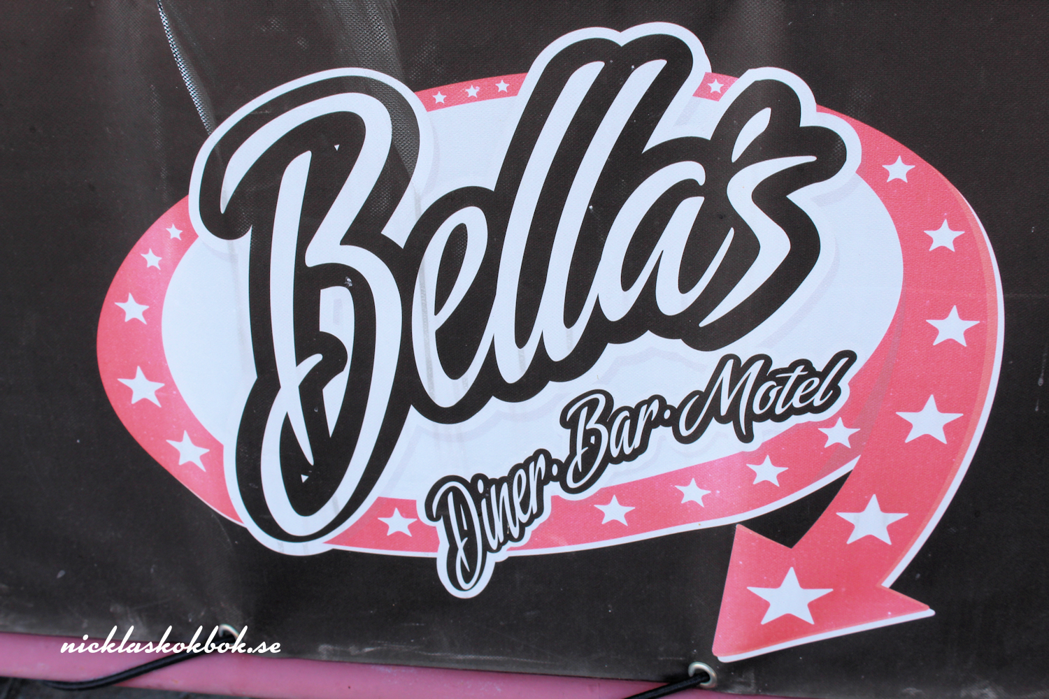 Men, det var ju tänkt att jag skulle skriva om Bellas Place. Det är ett matställe, som ligger i Bromölla, strax utanför Kristianstad och restaurangen är inspirerad av 50-tals hamburgrhak i USA. När restaurangen öppnade gick allt i 50-tals anda, från restaurangpersonalens klädsel till mat och musik. Så är det inte riktigt längre! Vi har fått burgare som har varit så torra, eller gummiaktiga, att man kunnat studsa dem på burnout-zonen, så den kritik Bellas fått på sin facebooksida är befogad. Så visst kan det vara lite av en chansning, men jag tycker ändå att Bellas Place är värd att nämna, för vi återvänder alltid dit. Inte alltid för att äta, utan för att släcka törsten då vi legat ute på vägarna.