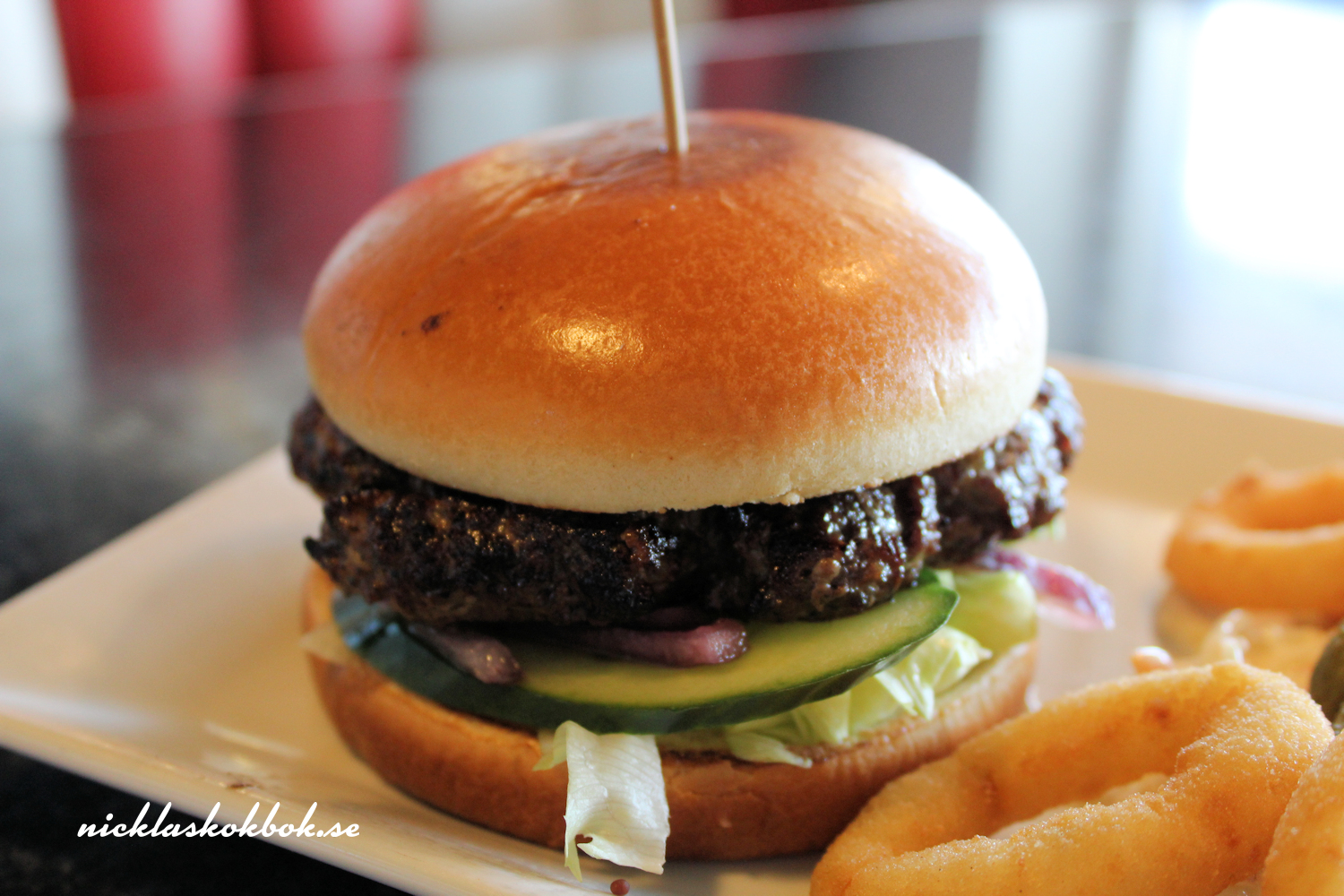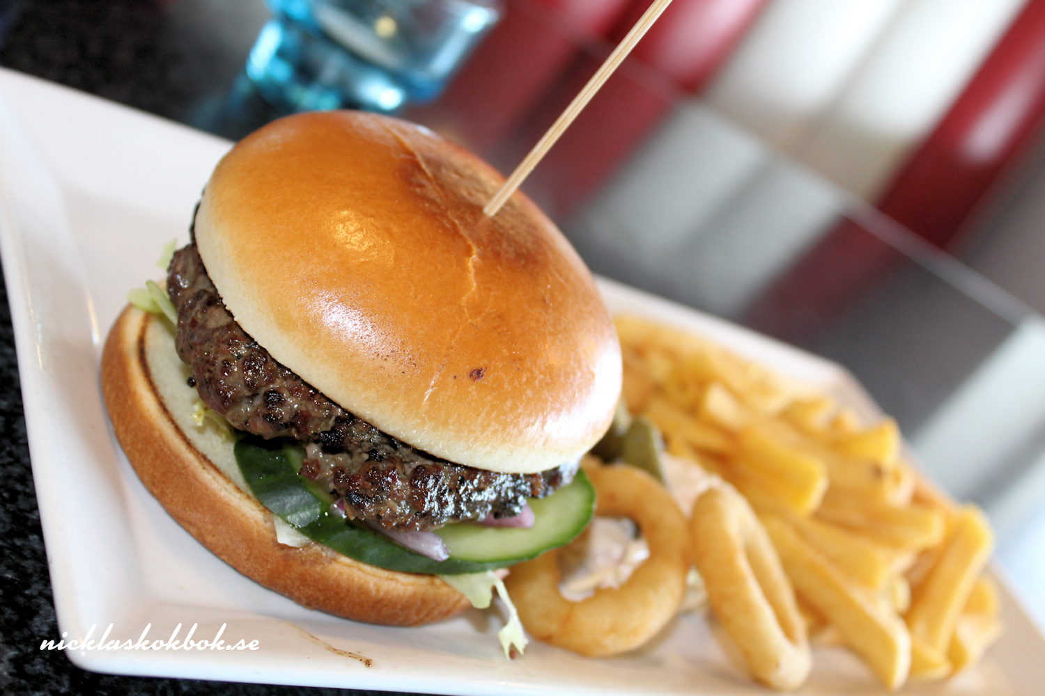 Vi anlände dit sen lördag eftermiddag så det var bara vi och ett fåtal besökare på plats. Vanligtvis är parkeringsplatsen fylld av motorcyklar från när och fjärran men igår vid fyra ekade parkeringen rätt tom. Vi beställde in varsin hamburgarna och burgarna är gjorda av 100% högrev. Mitt förslag är att skippa dressingen för då blir det inte så kladdigt. Eller be att få dressingen i en skål vid sidan om. Det är absolut inga problem att få gluten- och/eller mjölkfritt utan bara att säga till vid beställning.