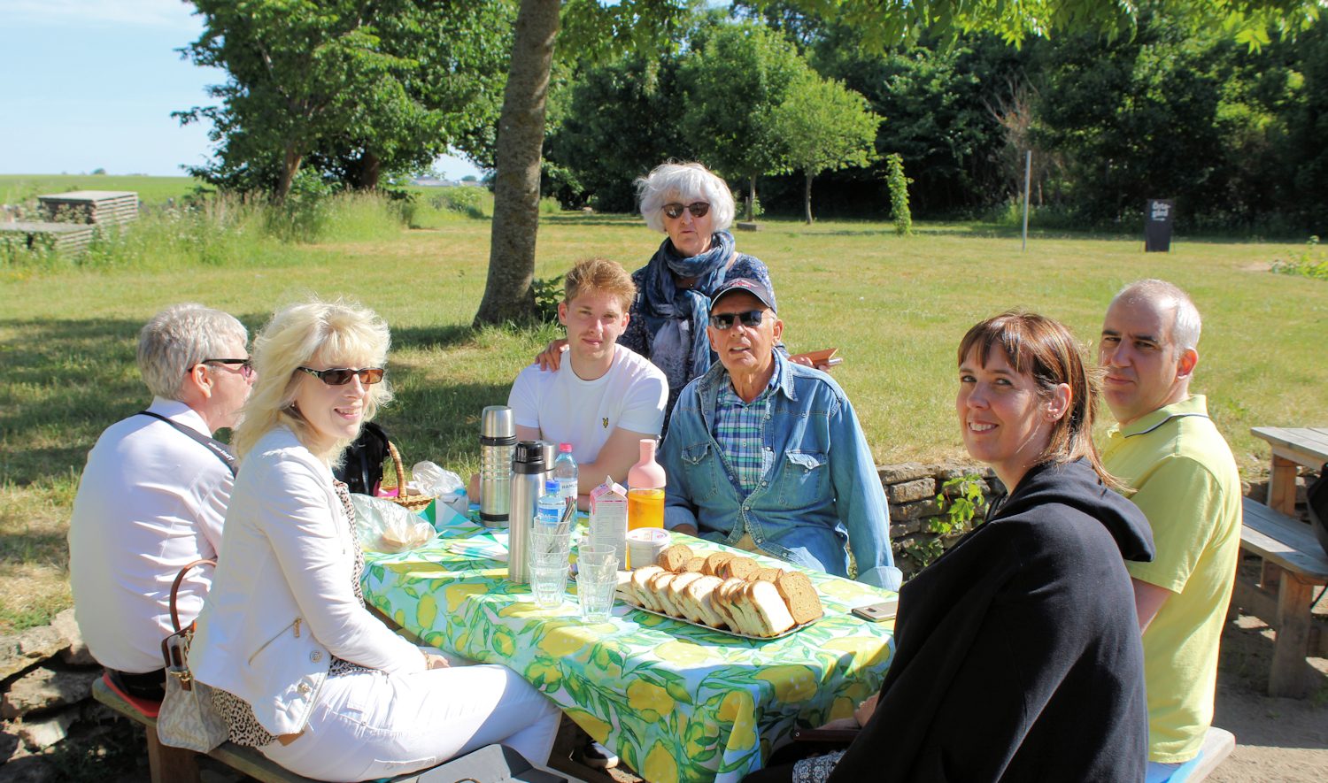 Vilken fantastisk lördag vi hade – som gjord för frukostpicknick ute i det gröna. Vi tog (nästan) hela familjen och åkte iväg till Glimmingehus där vi packade upp vår frukostkorg strax efter klockan nio. Jag hade gjort härliga smörgåsar som jag fyllt med Johnny´s senap mango & habanero, skinka och sallad. Den andra smörgåsen fylldes med på mackan vitlök och gurka, salami och sallad. Vill man, kan man lägga i tomater och gurka men eftersom jag förberedde mackorna kvällen före, så skippade jag detta, då både gurka och tomat har en tendens att bli rätt vattnigt och tråkigt när det legat ett tag. Jag hade också med mig Lupinghurt Hallon, kaffe och naturligtvis läskande iste.