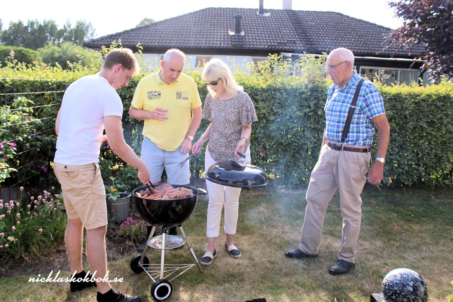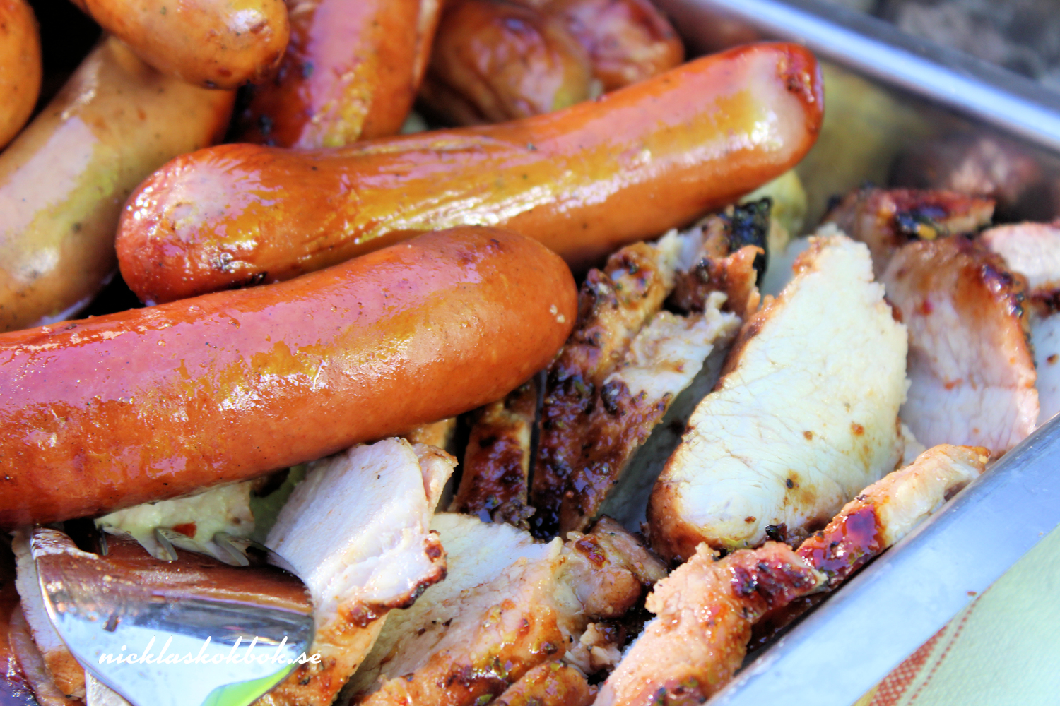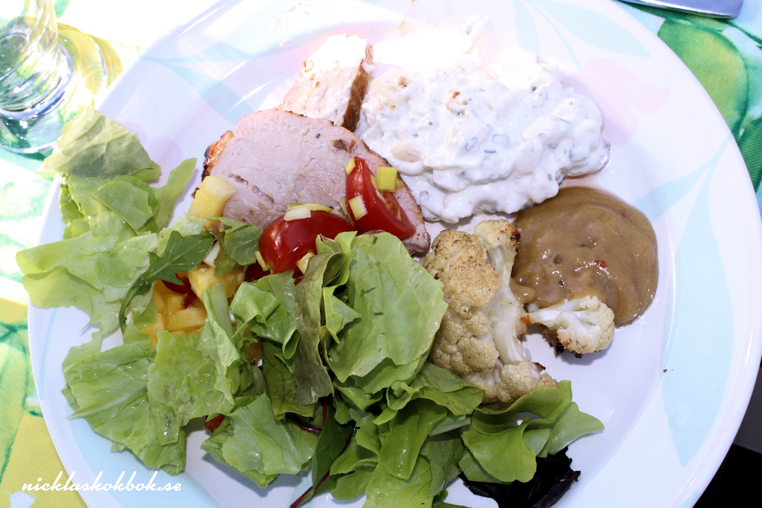 Vid fyra startade vi hemresan mot föräldrahemmet och väl där var det dags att börja förbereda kvällens barbecue. Jag snodde ihop en ananassalsa med mycket chili, hottade upp en färdigköpt potatissallad med äpple, bostongurka och massa andra godsaker. Köttet penslades med sweetchili och även blomkålen fick sig en touch av det. Emma och Robin anslöt och sedan var det dags att sätta sig vid bords. Till efterrätt blev det årets första svenska jordgubbar och det var så gott.