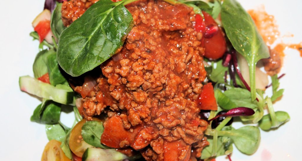 Skiva chorizo och lök. Bryn mjölkfritt margarin och bryn korv och lök. Tillsätt köttfärs. Stek tills det fått fin färg. Tillsätt passerade tomater och ketchup. Smaka av med salt och peppar. Låt småkoka i ca 1 timme på svag värme.