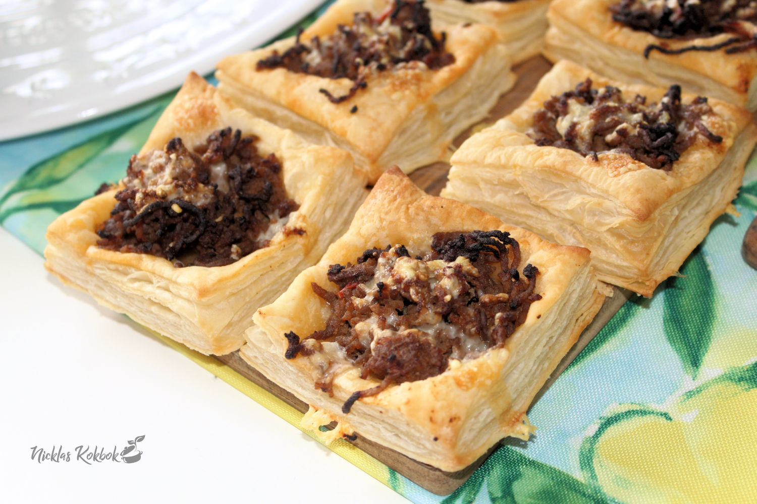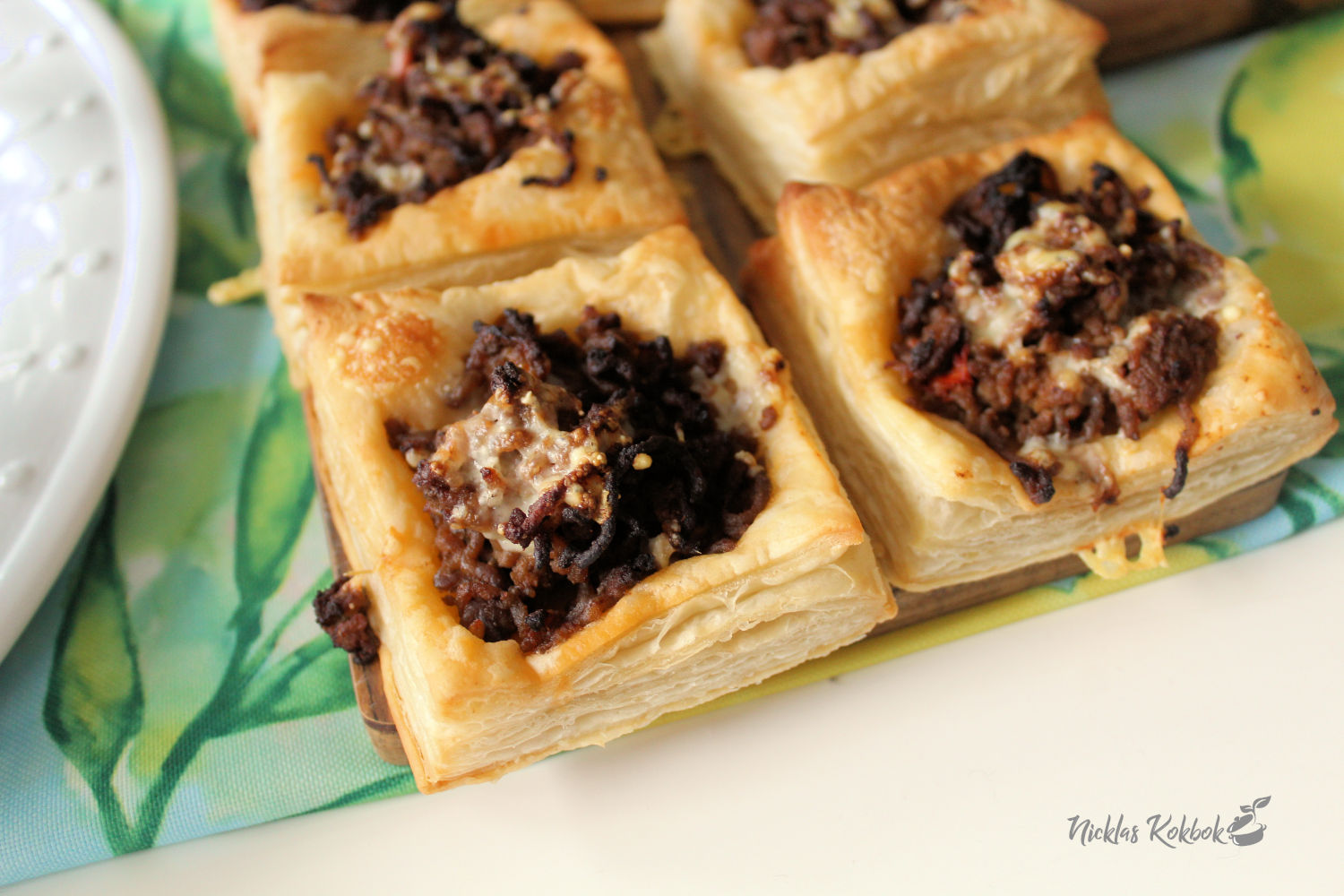 Innan dottern dök upp gjorde jag en snabb raid i frysen och där hittade jag både nötfärs och smördegsplattor som blev en god sidorätt. Testa gärna 🙂 Glöm bara inte att kolla att smördegsplattorna är fria från mjölkprotein. De flesta smördegsplattor är det, trots namnet smör.