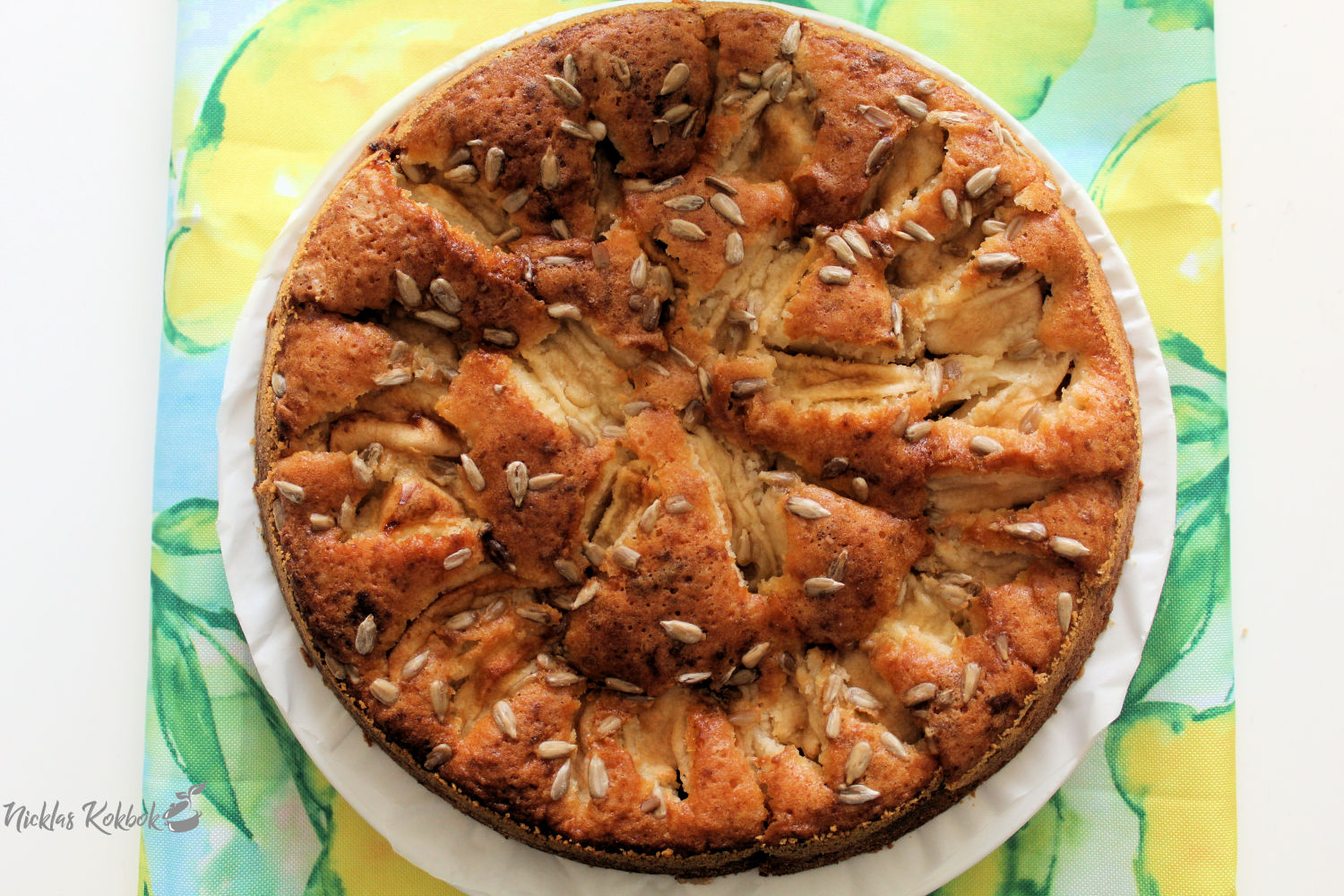 Istället för tårta blev det en smarrig äppelkaka med smak av äpplen, kanel och mandelmassa. Mums.