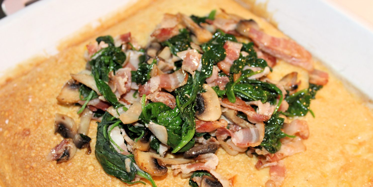 Toppa pannkakan med baconfräset.